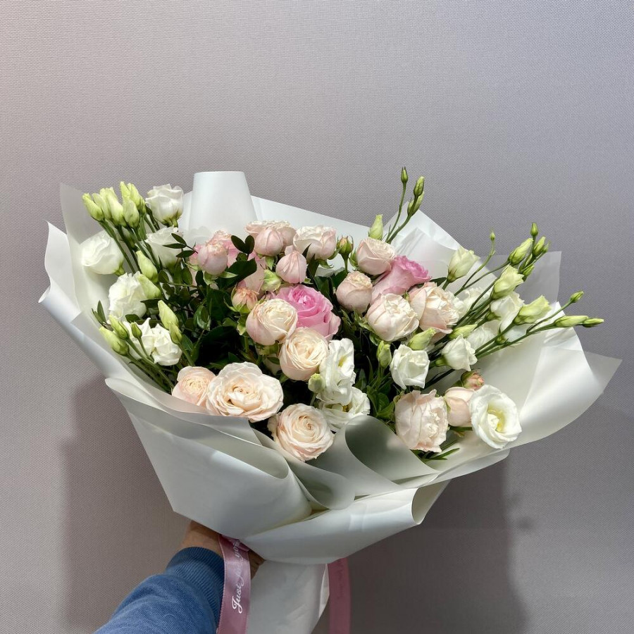 Букет из пионовидных роз и белых эустом в Ивантеевке